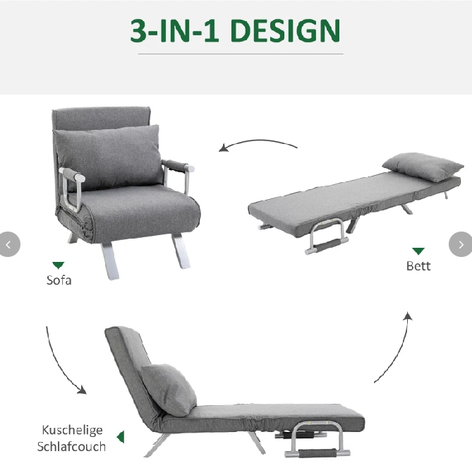 - 3-IN-1 DESIGN: Die Rückenlehne kann in fünf Positionen verstellt werden, dadurch kann es sekundenschnell von Sofa, in Lounge oder Bett umgewandelt werden, um Ihren verschiedenen Bedürfnissen gerecht zu werden
