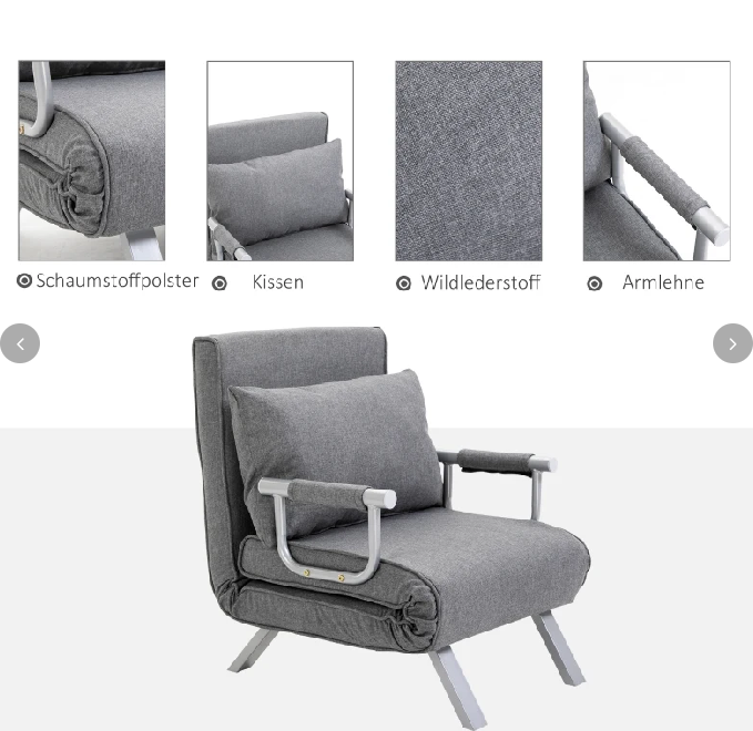 - STABIL UND ROBUST: Ein hochwertiges Gestell aus pulverbeschichtetem und rostfreiem Metall sorgt für eine stabile Basis und einen langlebigen Gebrauch. Die Armlehnen werden beim Umwandeln zum Bett für mehr Stabilität nach unten geklappt