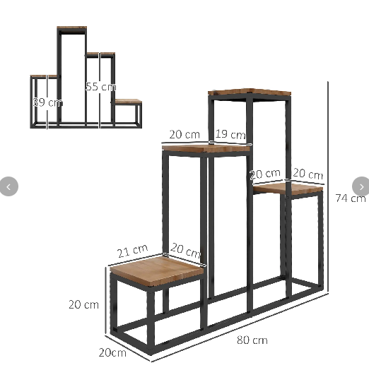 - Produktinformationen zum Blumenregal: Gesamtabmessungen: 80L x 20B x 74H cm. Max. Belastung: 15 kg (pro Regal)