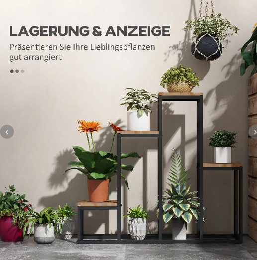 - Stilvolle Präsentation: Mit vier Regalböden bietet unser Pflanzenregal Platz für bis zu 4 Ihrer Lieblingsblumentöpfe. Ideal, um Ihre Pflanzen stilvoll zur Schau zu stellen