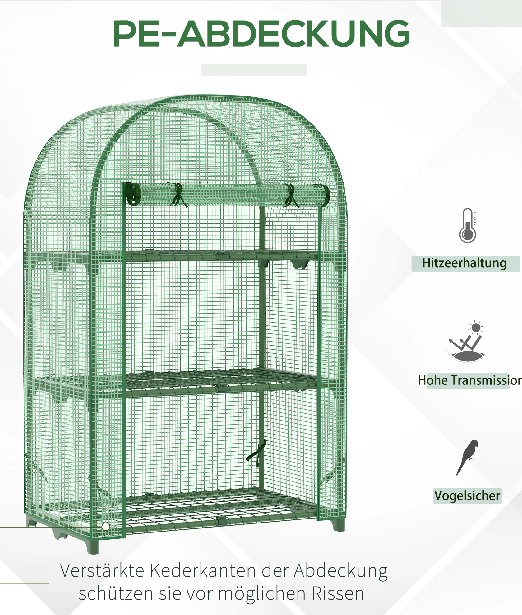 - STABILE KONSTRUKTION: Die vollständig geschlossene, UV-Licht-abweisende Kunststoffabdeckung sorgt für eine hohe Luftfeuchtigkeit beim Anbau tropischer Pflanzen und lässt zugleich energiereiches Sonnenlicht hindurch. Verstärkte Kanten der Abdeckung schützen sie vor möglichen Rissen und erhöhen die Stabilität des Mini Gewächshauses.
