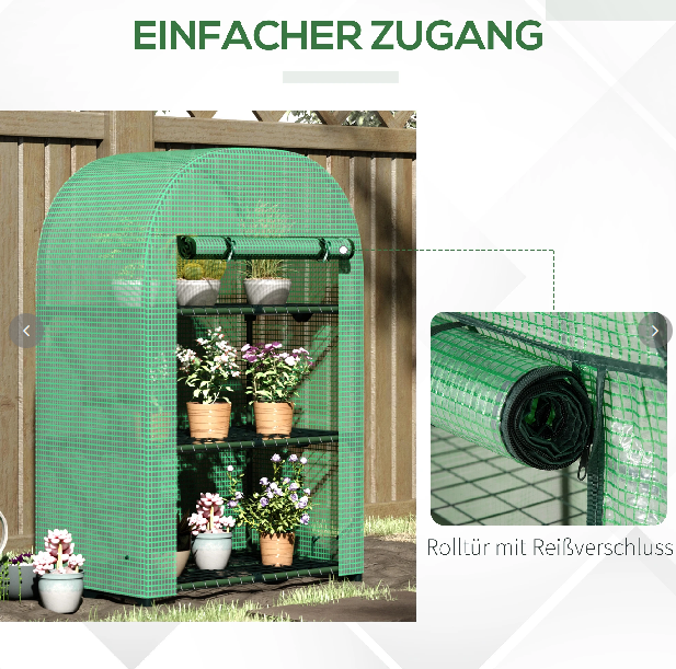 - AUFROLLBARE TÜR: Die aufrollbare Tür mit Reißverschluss kann vollständig geöffnet werden, um den Zugang zum Frühbeet und die Arbeit mit Ihrem Pflanzen zu erleichtern.