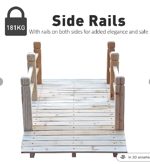 - Zuverlässige Sicherheit: Dank der Geländer mit jeweils drei hübschen Pfosten auf den beiden Seiten der Gartenbrücke können Sie sie jederzeit ganz beruhigt überqueren.