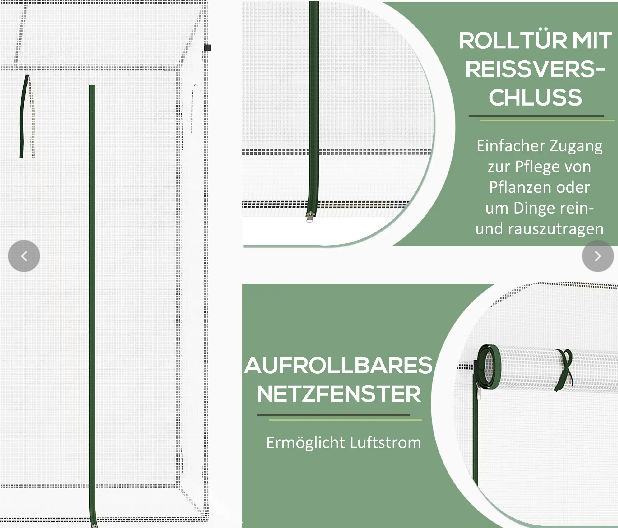 - Kunststoffplane: Schützt die Pflanzen vor Kälte und Wind, damit sie gesund wachsen und gedeihen können. Große, aufrollbare Tür zum Betreten und um bei Bedarf Frischluft hereinzulassen. Verlängerter Rand zum Beschweren oder Eingraben in die Erde.