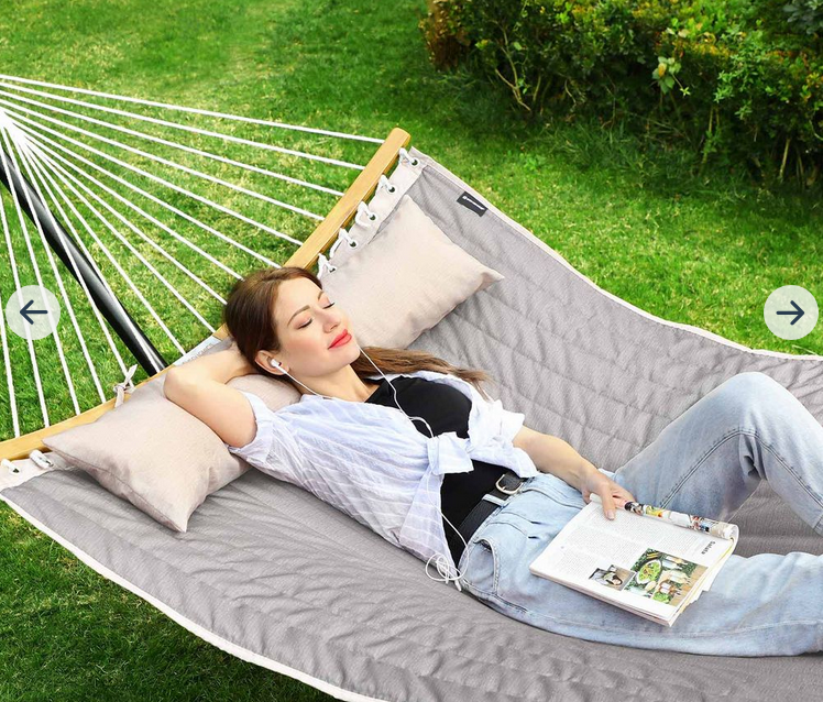 Befestigen Sie dieses Schwebebett an 2 Bäumen und setzen oder legen Sie sich nach einer Grill-Party hinein. Ihre Kinder und Hunde spielen in der Nähe, Sie schaukeln in dieser Hängematte hin und her, ein schöner Urlaub mit der ganzen Familie!