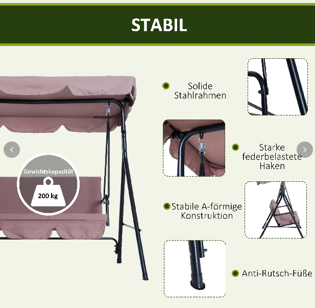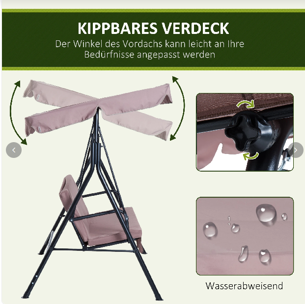 - SONNENSCHUTZ: Dank des neigbaren Sonnendachs bietet diese Hollywoodschaukel immer ein angenehm schattiges Plätzchen.