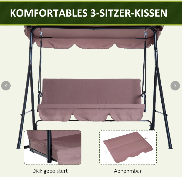 - HOLLYWOODSCHAUKEL: Dekorativ designt, bietet diese 3-sitzer Hollywoodschaukel - ideal geeignet für den Außenbereich wie Garten, Terrasse oder Balkon.