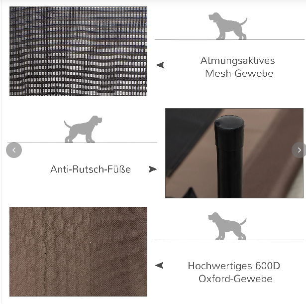 - Erhöhtes Bett: Hält Haustiere vom schmutzigen Boden fern und erhöht die Luftzirkulation darunter für Kühle und Komfort, besonders an heißen Sommertagen.
