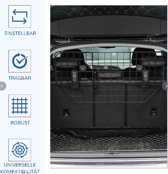 - Universale Passform: Dank der von 90 bis 120 cm stufenlos verstellbaren Breite ist das Hundegitter für die meisten Autos geeignet.