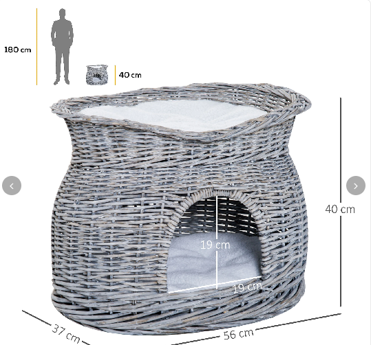 - VINTAGE-DESIGN: Ihre Katzen werden dieses 2-stöckige Katzenbett aus Weidengeflecht lieben! Die untere Ebene bietet Ihrer Katze eine geräumige Höhle zum Entspannen. Auf der zweiten Plattform befindet sich eine kuschelige Unterlage.