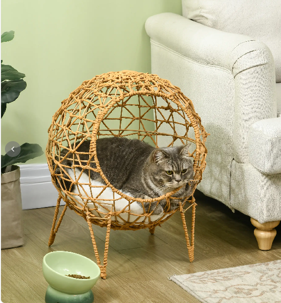 - Gute Belüftung: Dank des geflochtenen Rattan-Materials und der Erhöhung wird das Katzenhaus gut belüftet.