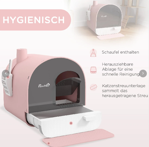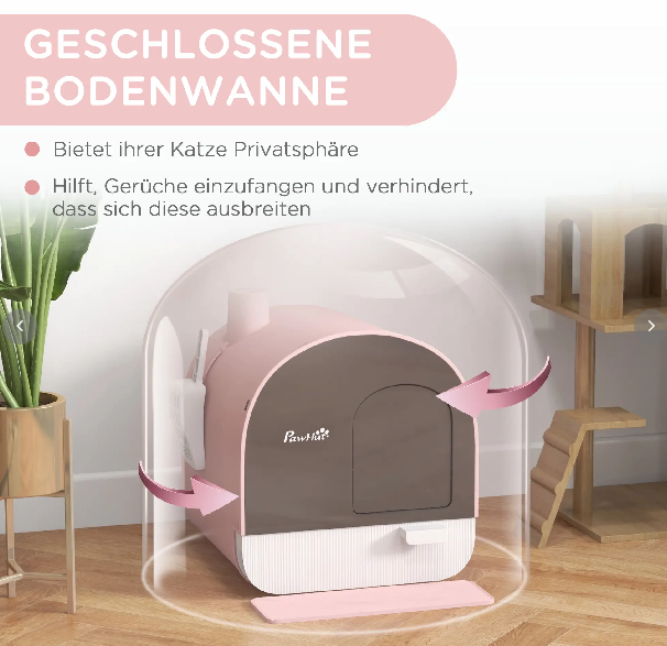 - Privates Katzen-WC: Diese geschlossene Katzentoilette bietet Ihrer Katze einen geschützten Ort für ihr Geschäft, während die integrierten Filter Gerüche minimieren und für ein angenehmes Raumklima sorgen.