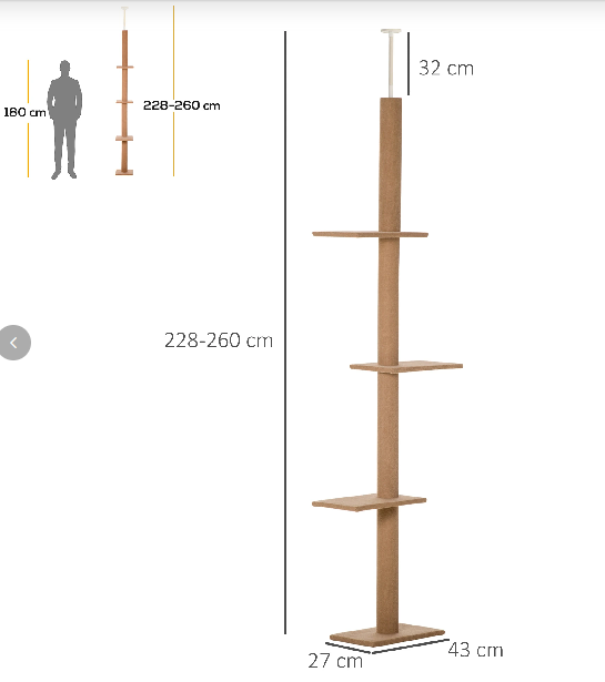 - AKTIVITÄTSZENTRUM: Dieser höhenverstellbare, vom Boden bis zur Decke reichende Kratzbaum kann mit dem mitgelieferten Zugstab an der Decke befestigt werden. Er verfügt über 4 Aktivitätsplattformen sowie platzierte Kratzflächen, die endlose Möglichkeiten zum Klettern, Spielen und Ausruhen bieten.