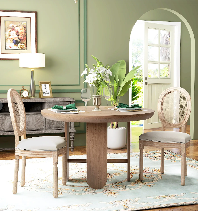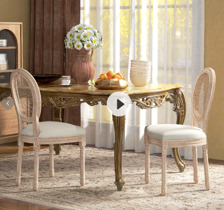 - Französischer Vintage-Stil: Das gepolsterte Esszimmerstuhlset aus weiß gebürstetem Holz mit zarten Schnitzereien und Rattan-Rückenlehne ergänzt Ihre Einrichtung und passt zu jedem Einrichtungsstil