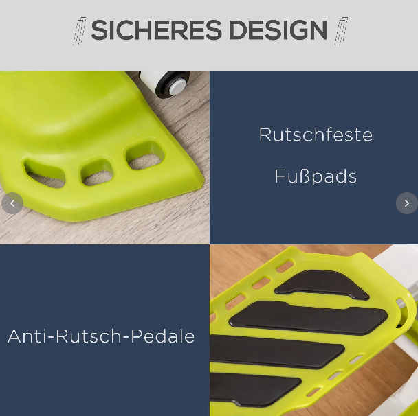 - Produktdaten des Steppers: Gesamtmaße: 48L x 34B x 21H cm, Pedalgröße: 32L x 14B cm