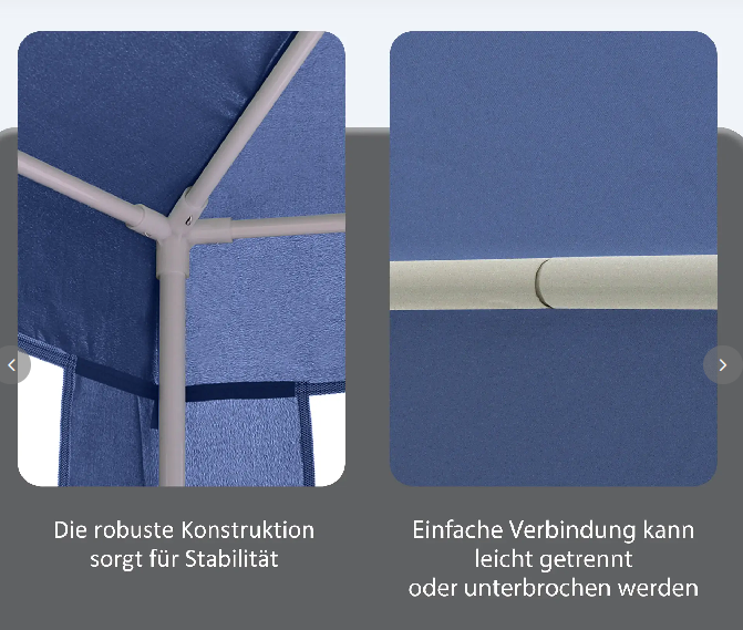 - MIT MOSKITONETZ: Das Dach des Pavillons besteht aus wasserabweisendem Polyester und die Seitenwände aus Moskitonetz, sodass der Pavillon ihnen den idealen Schutz vor Sonneneinstrahlung und Insekten bietet. 2 Seitenwände sind mit Reißverschluss für bequemen Ein- und Ausgang versehen.
