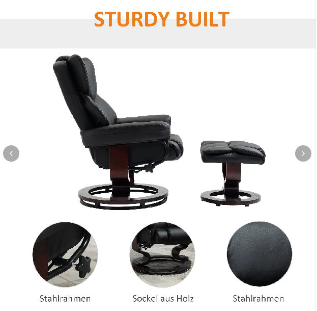 - Komfort-Set aus Ruhesessel und Hocker: Der Relaxsessel lässt sich bis zu einem Winkel von 145° zurückneigen und bietet mit dem passenden Hocker die Möglichkeit, bequem die Füße hochzulegen. Der 360°-Drehsessel lässt sich leicht in alle Richtungen drehen.