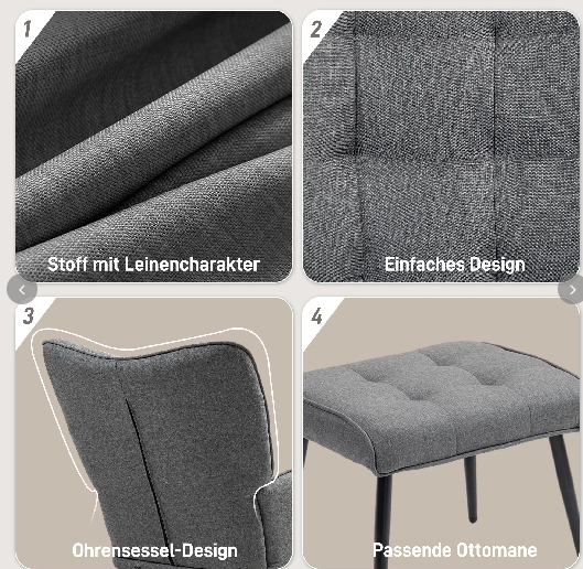 - Eleganz für Ihr Zuhause: Lassen Sie Ihren persönlichen Stil erstrahlen. Dieser Schaukelstuhl mit passendem Fußhocker ist mehr als nur ein Möbelstück – er ist ein Statement. Mit seinem eleganten, geflügelten Rückendesign wird dieses Set zum beeindruckenden Highlight in jedem Raum.