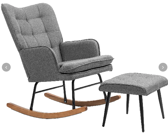 - Zeit zum Entspannen: Genießen Sie die sanfte Schaukelbewegung des Schaukelsessels und lassen Sie den Stress des Tages hinter sich. Perfekt für ein Nickerchen oder um Ihr Kind in den Schlaf zu wiegen. Der passende Fußhocker bietet zusätzlichen Komfort für Ihre Füße.